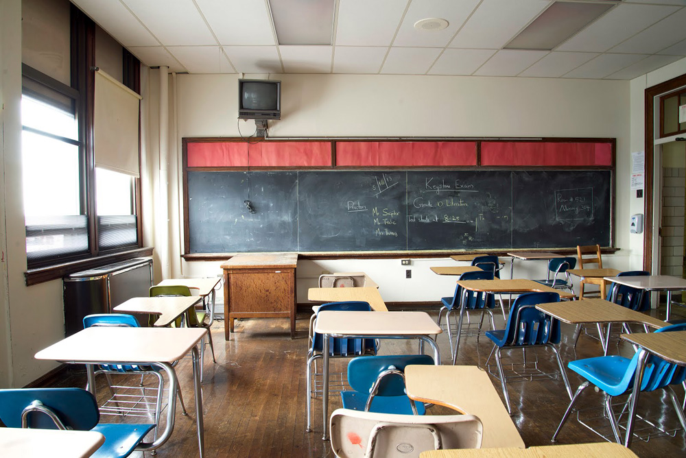 A classroom in Edward W. Bok Technical High School, a shuttered public school in Philadelphia. (Katrina Ohstrom)