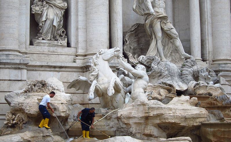 Workers cleaning the Trevi fountain in Rome, Italy. fabulousfabs / Flickr
