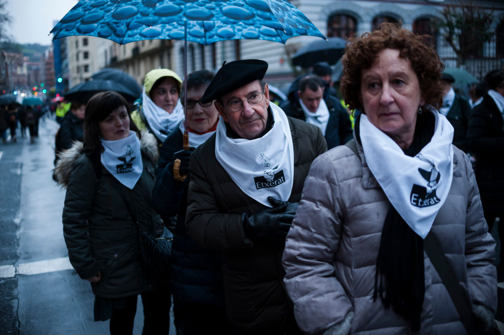 Relatives of Basque prisoners take part in a demonstration in Bilbao in January. Gari Garaialde / Getty Images