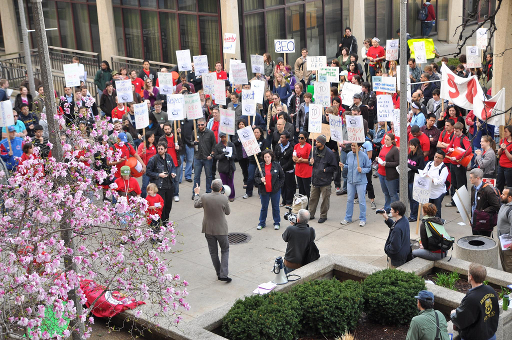 Members of the Graduate Employees Organization protest on the UIC campus in 2010. Ben Seese / Flickr
