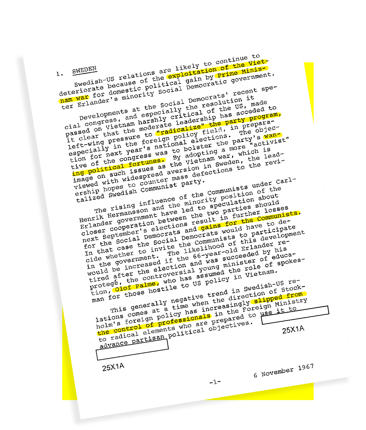 A CIA report from November 1967 reveals the agency’s deep fear of Swedish social democracy, and its rising star Olof Palme.