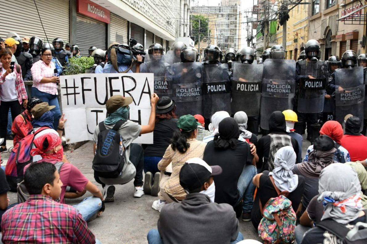 In Honduras, to oppose the government has become dangerous. The state apparatus has made it clear that any calls of “Fuera JOH!” (“Out JOH!”) will not be tolerated. The regime is protected by a national media that discredits any form of anti-government resistance and an international media whose only coverage of the country is to demonize its most vulnerable people who flee extreme violence and poverty. Under this imperial shield, Hernández is employing state violence and repression without fear of consequence.