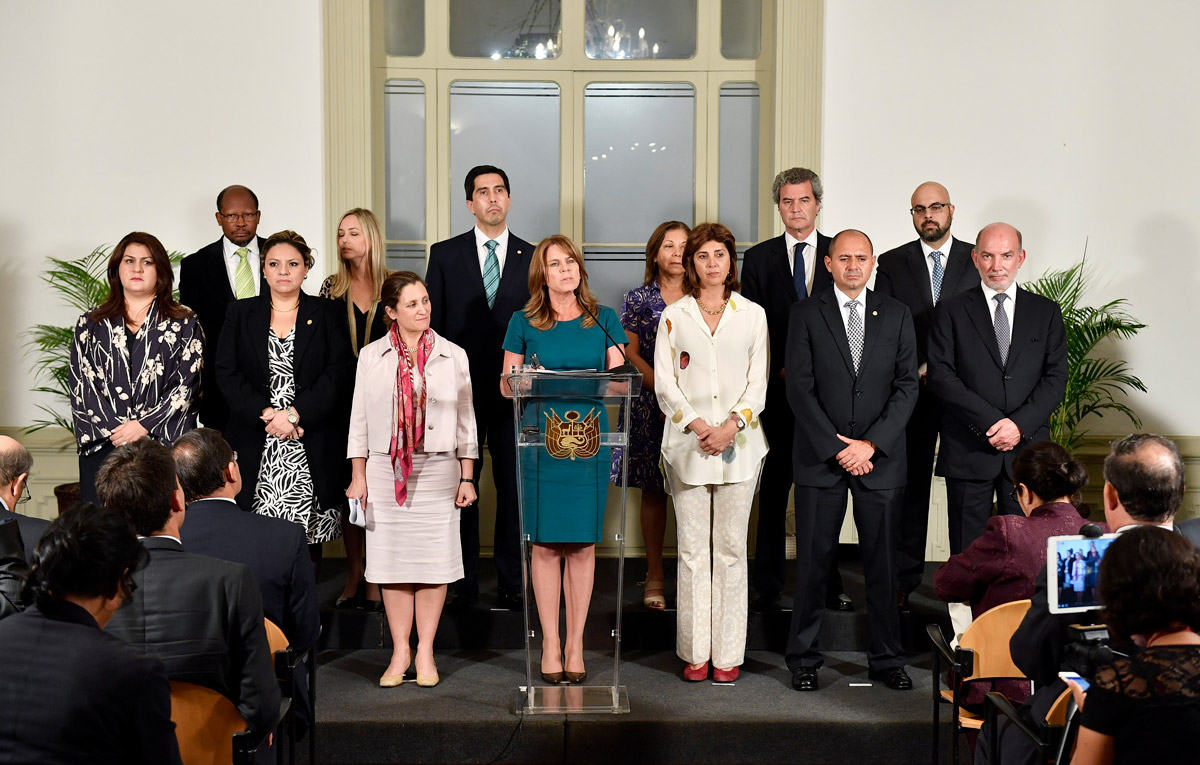 Foreign ministers representing member states in the Lima Group meet together at the Palacio de Torre Tagleon on February 13, 2018 in Lima, Peru. (Ministerio de Relaciones Exteriores / Flickr)