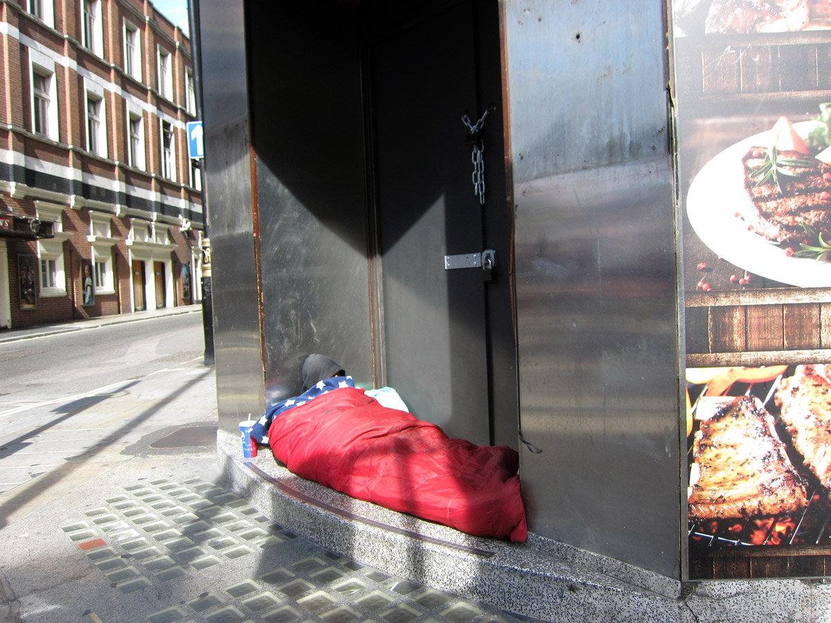 Homeless people, in other words, tend to be devalued socially, politically, and aesthetically because they have been devalued by, and are valueless to, capital. They violate the capitalist law of value, they’re “not working for what they get,” and they need to, as the common refrain goes, “get a job.”