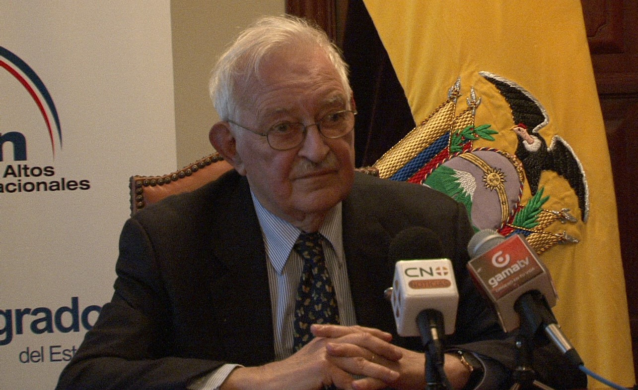Immanuel Wallerstein speaks with the press at the Foreign Ministry of Ecuador, August 1, 2011.Cancillería Ecuador / Flickr
