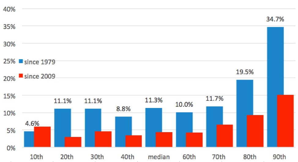 Across the rest of its economy, Iowa looks a lot like the rest of the country. After more than a decade of glacial recovery from the Great Recession, employment has largely recovered in manufacturing, construction, finance, and professional and business services. Even with historically low levels of unemployment (at 2.5 percent in September, Iowa had a lower rate than every state but Vermont), the state’s economy is delivering little to working families.