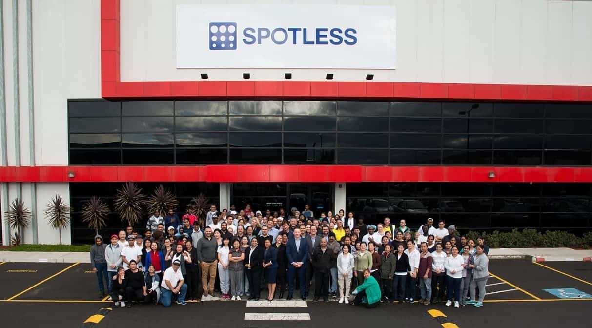 Workers outside the Spotless Laundry facility near Melbourne, Australia, around the time of its opening in 2017. Photo: Spotless