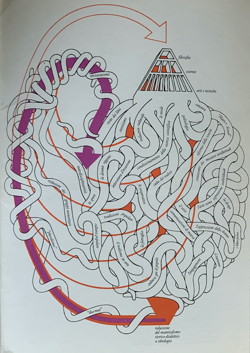 Among Mari’s less well-known works is an atlas produced together with Francesco Leonetti, a writer, poet, and lecturer in aesthetics at Milan’s Brera academy of art. This was an unusual atlas, for its object was not geography but the fundaments of Marxism.