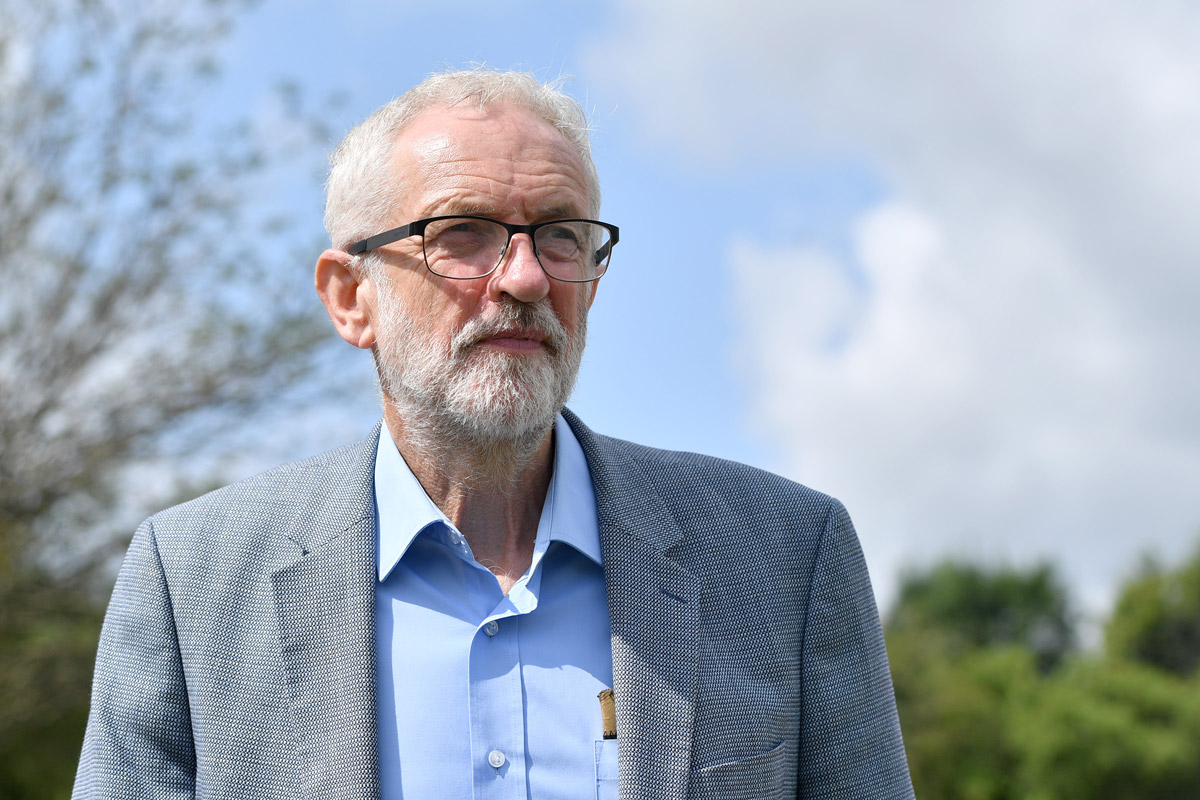 Jeremy Corbyn visits the Whaley Bridge Dam site on August 5, 2019 in Whaley Bridge, England. (Anthony Devlin / Getty Images)