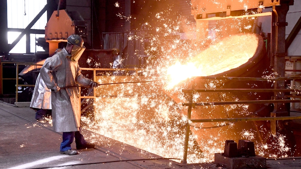 Smelters working at Huttenwerk Koenigsbronn GmbH, the product of an employee buyout of the 655-year-old Schwabische Huttenwerke in southern Germany.