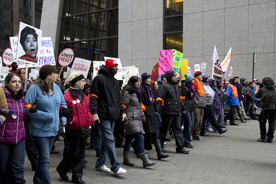 Students and parents from Lafayette School marching in Chicago on March 21, 2013, to protest school closings. (Bill Healy / Chicago Public Media via Labor Notes)