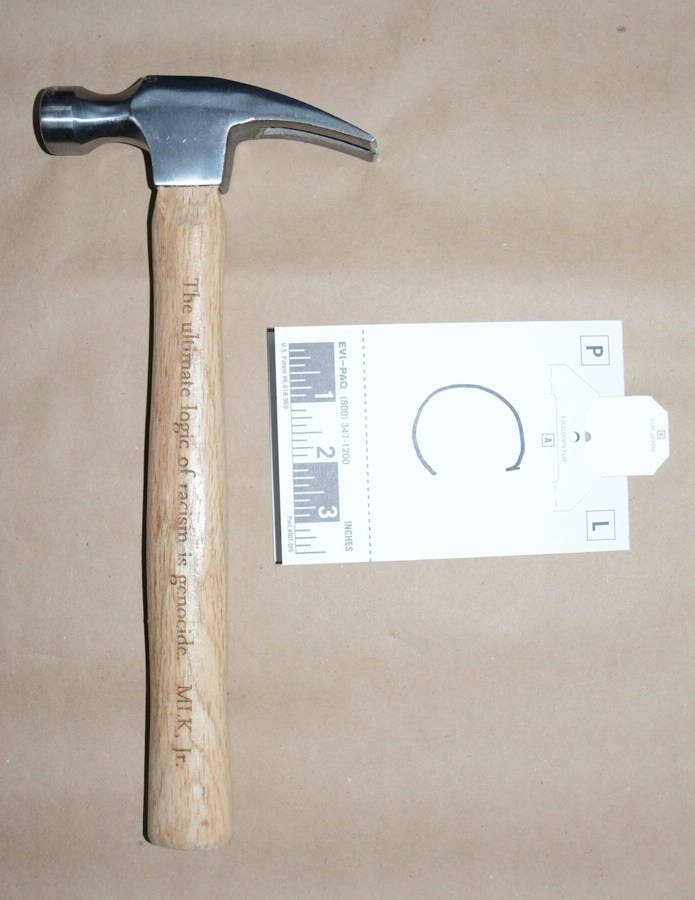Colville kept a hand on his rosary, its old familiar prayers sliding through his mind as he walked across the dark base with his friend Patrick O’Neill. In Colville’s backpack was a hammer inscribed with another MLK quote: “The ultimate logic of racism is genocide.” Colville and O’Neill each spend most of their days working with homeless people, scaring up food donations and attending to people who’ve fallen out the bottom of capitalism, Colville in New Haven and O’Neil in North Carolina. They had come to beat swords into plowshares.