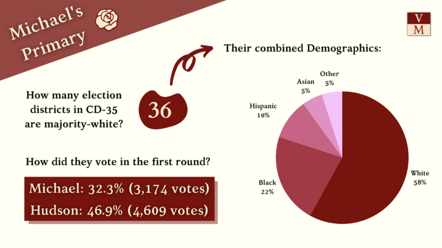 Sadly, this partnership fell short in 2021, and the precinct breakdown shows why. Just like Phara and Jabari, Michael won in the majority-black precincts in his district. But Phara and Jabari also dominated with white voters. Phara won her district’s majority-white precincts 58 percent–42 percent against Mosley, and Jabari won his by a whopping 64 percent–26 percent against Tremaine Wright. Last week, white areas in CD-35 broke for Hudson by nearly fifteen points against Michael; she netted close to fifteen hundred votes out of those precincts alone.