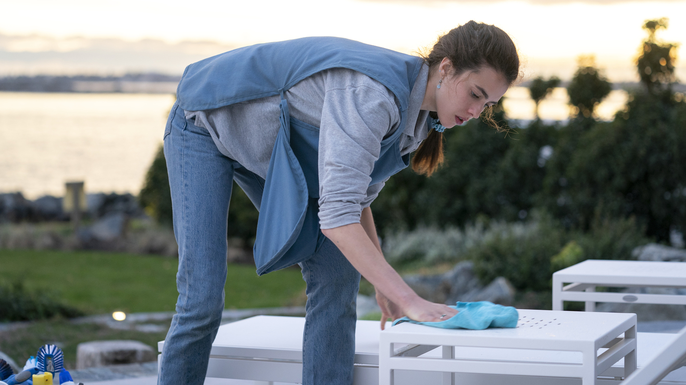 In Maid, Margaret Qualley plays Alex, a single mother working as a house cleaner. (Ricardo Hubbs / Netflix)
