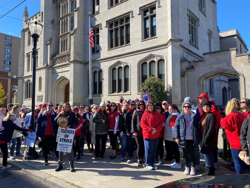 Members of the Scranton Federation of Teachers, who went on strike on Wednesday, hold a rally at Courthouse Square in Scranton, Pennsylvania on November 5, 2021. (Scranton Federation of Teachers)
