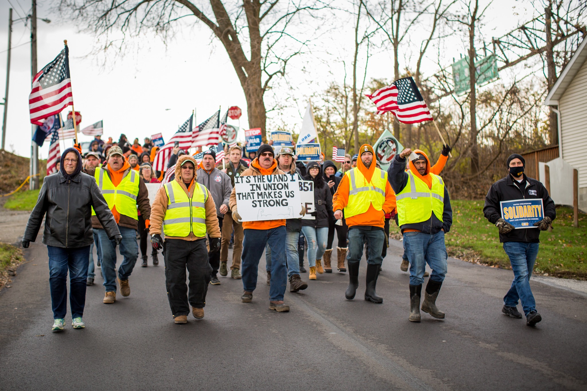 “I’ve seen a worker welding with a swollen face and an ice pack. Another guy asked for my needle-nose pliers and pulled his own tooth in front of me,” says Glenn Ybanez, one of the Erie Strayer ironworkers who has now been on strike for ten weeks.