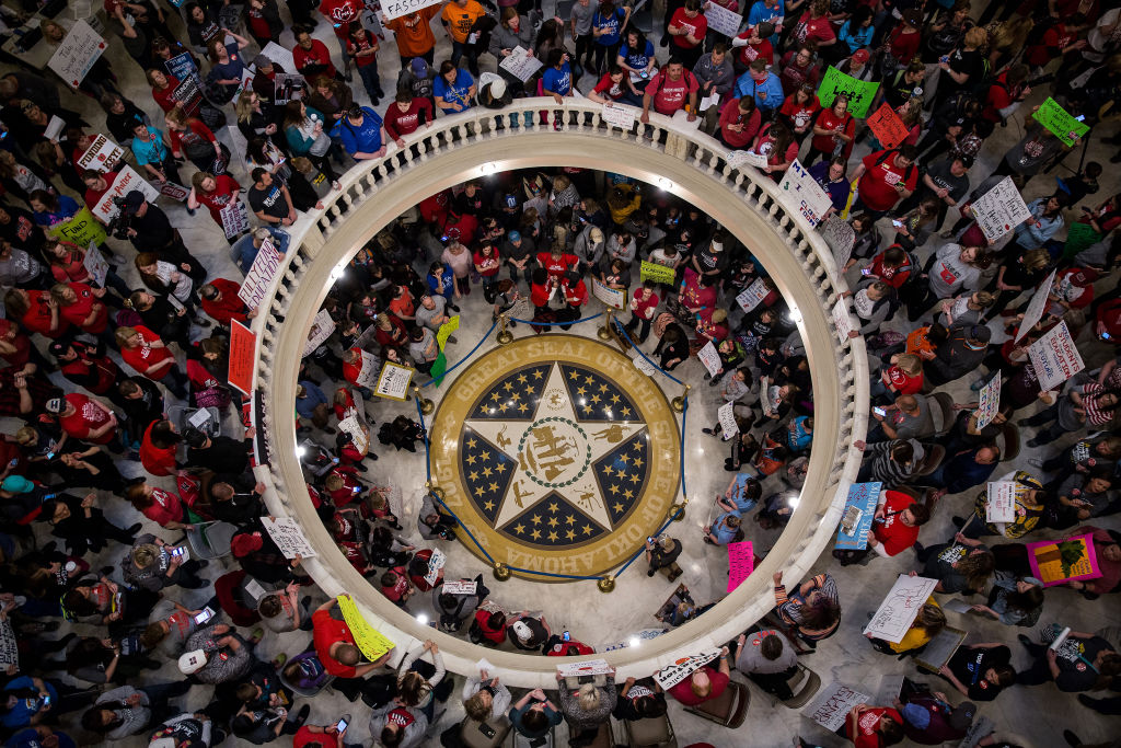 Oklahoma’s work stoppage was built primarily through social media and was a prototypical example of mobilization without organization, with the OTW Facebook group almost overnight becoming the central forum through which the work stoppage was initiated. Yet after the April 2 walkout date was set in the first week of March, the group served mostly as a communications hub. This approach was in many ways remarkably successful at energizing educators.
