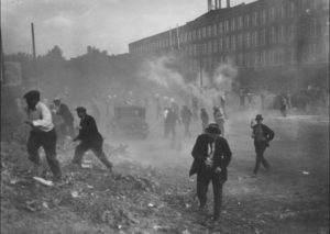 On Wednesday, May 23, in front of a pro-union crowd of ten thousand, police arrested strike leaders and beat an elderly man. The crowd exploded. “With their bare fists and rocks,” writes Art Preis in Labor’s Giant Step, “the workers fought a six-day pitched battle with the National Guard.” Toledo strikers won the sympathy of the community, with forty thousand people rallying in the city center and forcing the withdrawal of troops. The company gave up. Auto-Lite workers won a union and a raise.