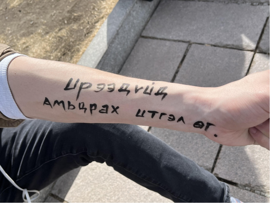 Significantly, many of the slogans added the words “to live well in our own country” — conveying the desire to stay in Mongolia rather than migrate to South Korea or the United States for potentially higher salaries. The protest was patriotic in tone, with protesters collectively singing the national anthem, while several school-aged children clasped their hands over their hearts. This was followed by instantly familiar songs about the passionate attachment to one’s homeland, such as: “There’s no clear sky bluer than this / There’s no place better than my native land / No faith lovelier than this / There’s no place better than my native land.” Read together “Do your job” and “We want to live well in Mongolia” formulate the position that it is the government’s responsibility to the nation and its citizens to create the conditions of livability. The demands were powerful because of their seeming simplicity and common sense: Mongolians want to be able to live and work in their own country.