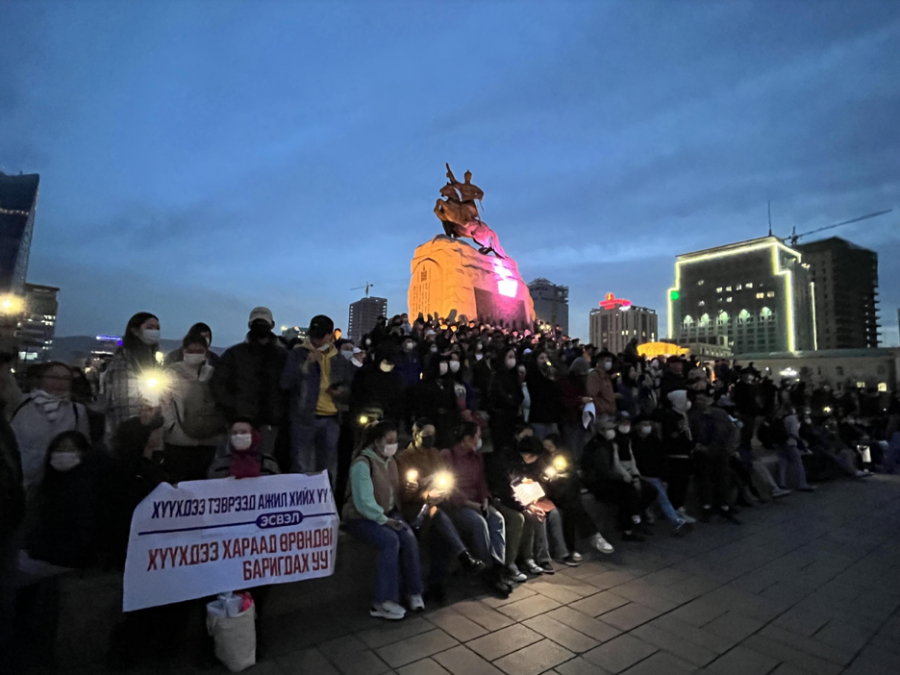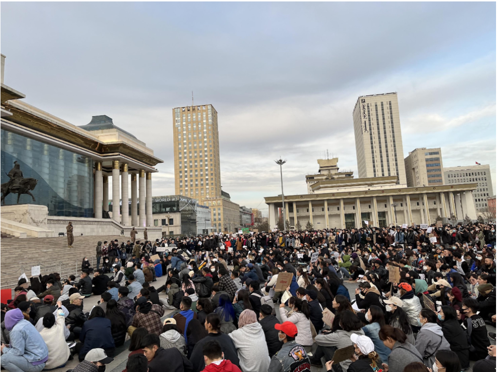 Protesters in Sükhbaatar Square in Ulaanbaatar, Mongolia. (Christian Sorace)