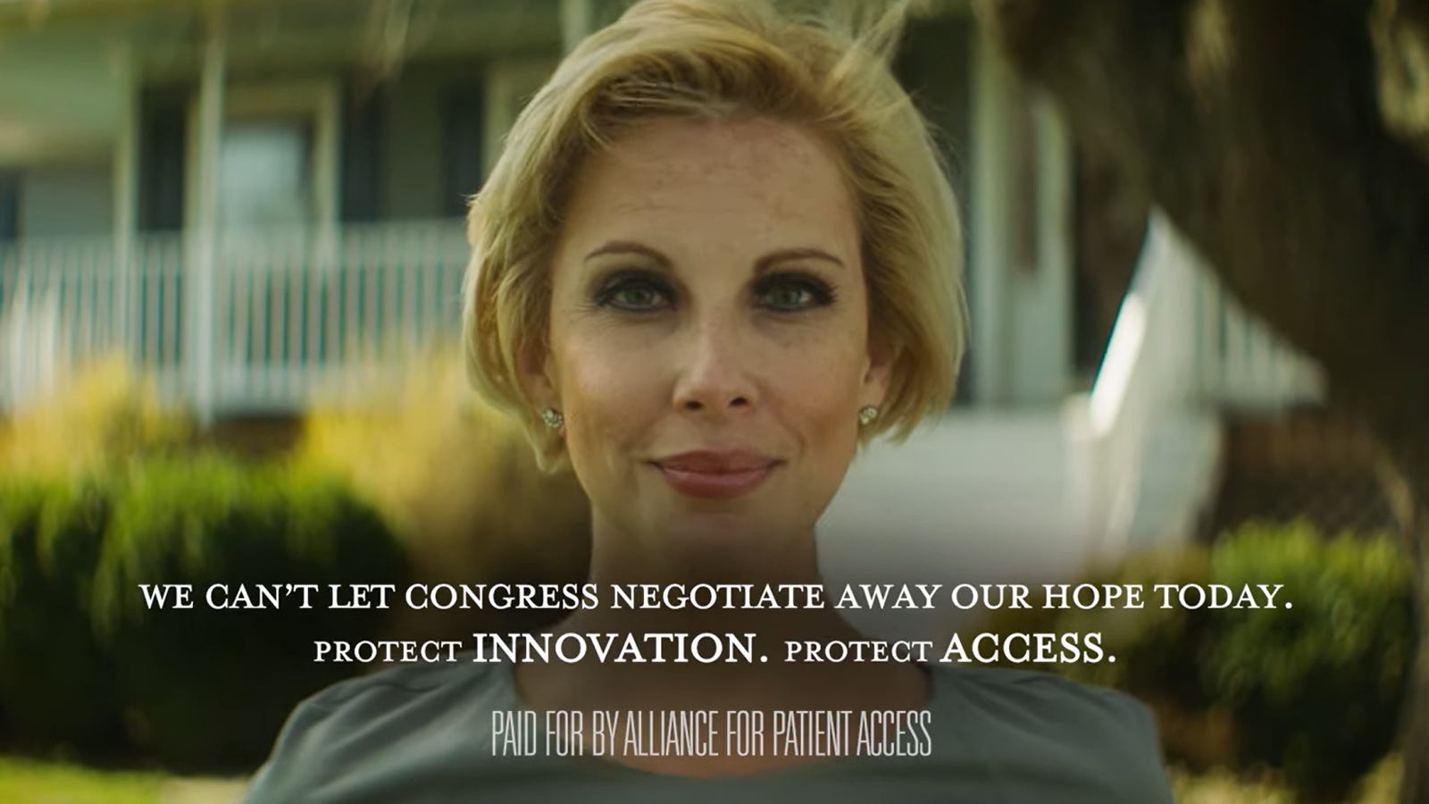 An ad from the Alliance for Patient Access warning that drug pricing reforms would “hurt innovation” and prevent companies from developing new treatments.