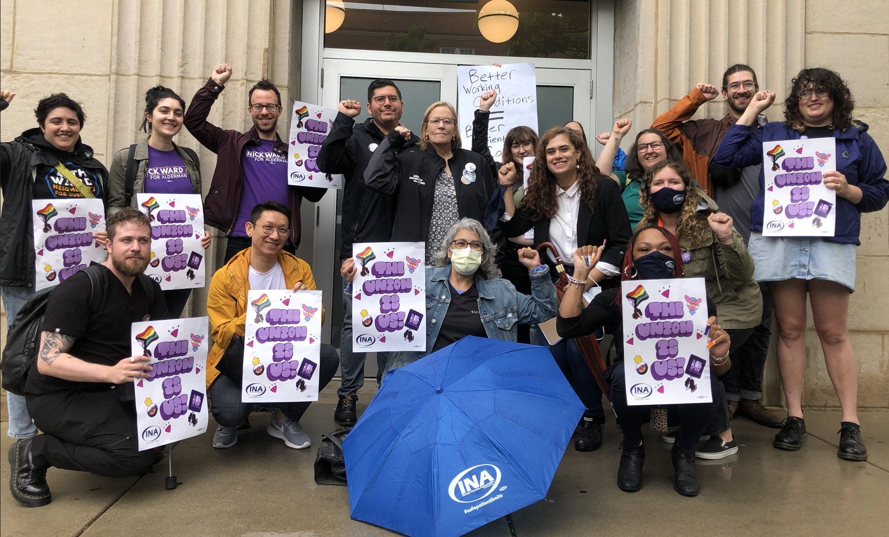 This is the first time I’ve ever done anything related to a union, so I personally don’t have anything to compare it to. This campaign started at the end of 2021, when the Omicron surge was happening in Chicago; that was also about the time Howard Brown announced they were going to be following a five-day quarantine for COVID. So many of our coworkers were catching COVID and were out sick. They have never given us hazard pay through the pandemic. Nurses may be in a different situation because they have a union contract.