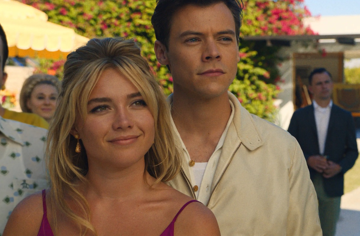 Even among the apparently devoted young heterosexual couples who make up nearly the total population of Victory, Alice and Jack (Harry Styles) are extraordinarily wrapped up in each other. The movie spends too long establishing all this, and too frequently shows us how hot Alice and Jack are for each other in several sex scenes that, oddly enough, don’t generate much heat at all — not even in the one that clears the dining room table of the elaborate meal Alice had just prepared.