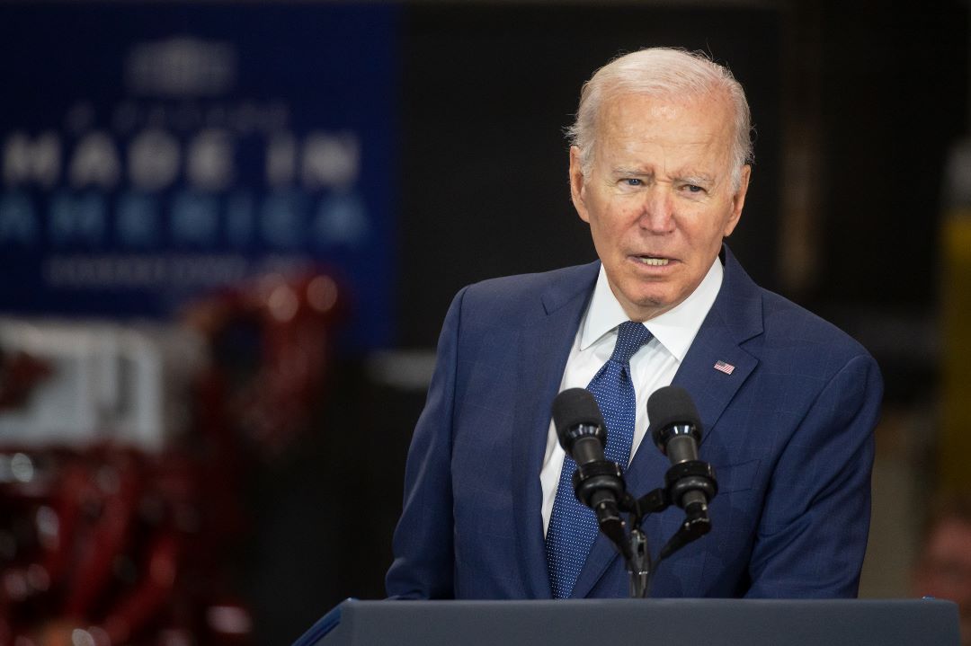President Joe Biden speaks at the Volvo Group powertrain manufacturing facility in Hagerstown, Maryland, on Friday, October 7, 2022. (Craig Hudson / Bloomberg via Getty Images)