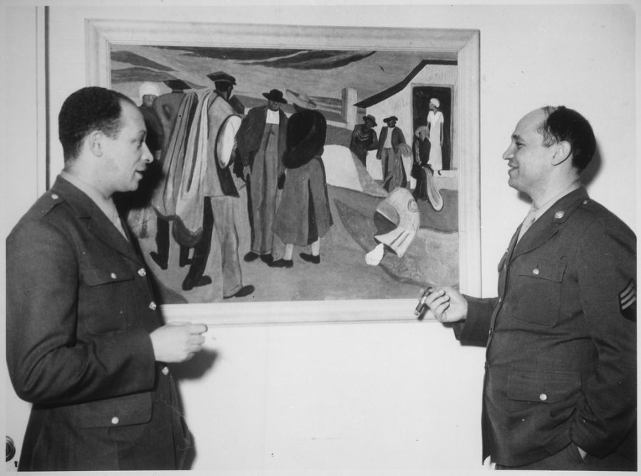 Lawrence also introduced Bearden to the Harlem Artists Guild as well as fellow painters Charles Alston and Aaron Douglas, who had successfully pressured the Works Progress Administration (WPA) to employ more black artists. This newfound community grounded him in a way he had never experienced. “I had no idea there were that many Black artists in the entire country. . . . Until then we had been isolated,” he said.