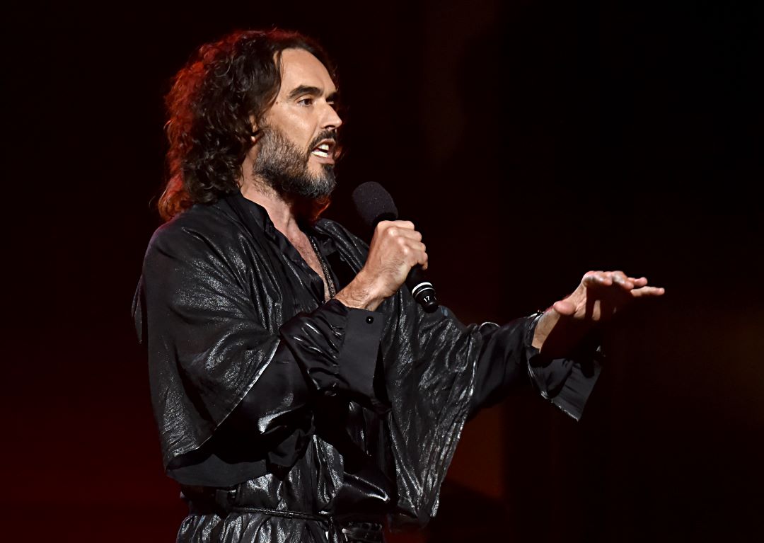 Russell Brand speaks onstage during MusiCares Person of the Year honoring Aerosmith at West Hall at Los Angeles Convention Center on January 24, 2020, in Los Angeles, California. (Lester Cohen / Getty Images for The Recording Academy )