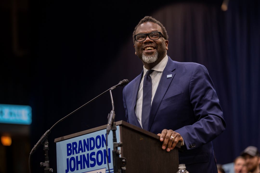 Mayor-elect Brandon Johnson speaks to supporters during a rally at the UIC Forum on March 30, 2023, in Chicago, Illinois. (Jim Vondruska / Getty Images)