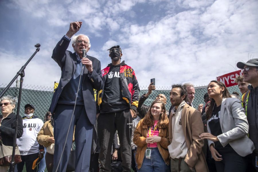 A demonstrator during an Amazon Labor Union rally outside an Amazon warehouse in the Staten Island, New York, on April 11, 2023. (Paul Frangipane / Bloomberg via Getty Images)