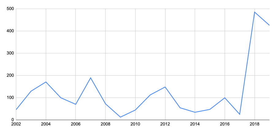 Consider, for instance, the statewide 2018 educators’ strikes, which were largely begun over viral rank-and-file Facebook groups. This was the first US strike wave since the 1970s, impacting millions of students and involving hundreds of thousands of school workers. Strike activity in 2018 rose to its highest peak since the mid-1980s, and it remained high in 2019 as the wave spread to blue cities like Los Angeles and Chicago. The qualitative shift was even more significant: unlike in the Reagan era, the red-state revolt consisted of work stoppages that were mostly illegal, statewide in scope, offensive in their demands, and generally victorious in their outcomes.