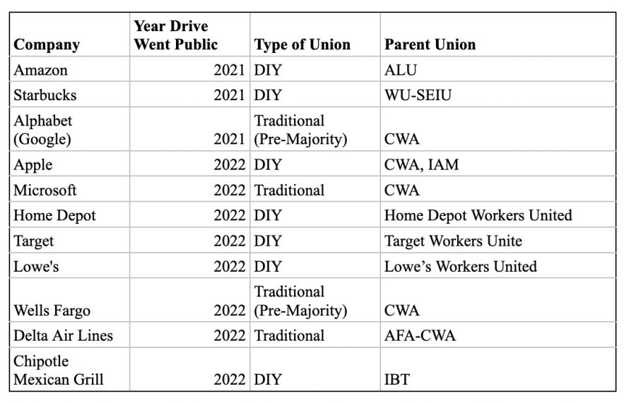 Winning elections at these types of firms is a major development that is not captured by membership rolls alone. National unions have for decades generally avoided pushing for union elections at such large companies, believing not unreasonably that they were simply too powerful to defeat — at least under our current, threadbare, and barely enforced labor laws. As such, the vast majority of years since the Fortune 500 was established in 1955 have witnessed zero, or at most one, union drives at the nonunion companies on the list. In contrast, 2021 saw three such drives and 2022 saw eight.