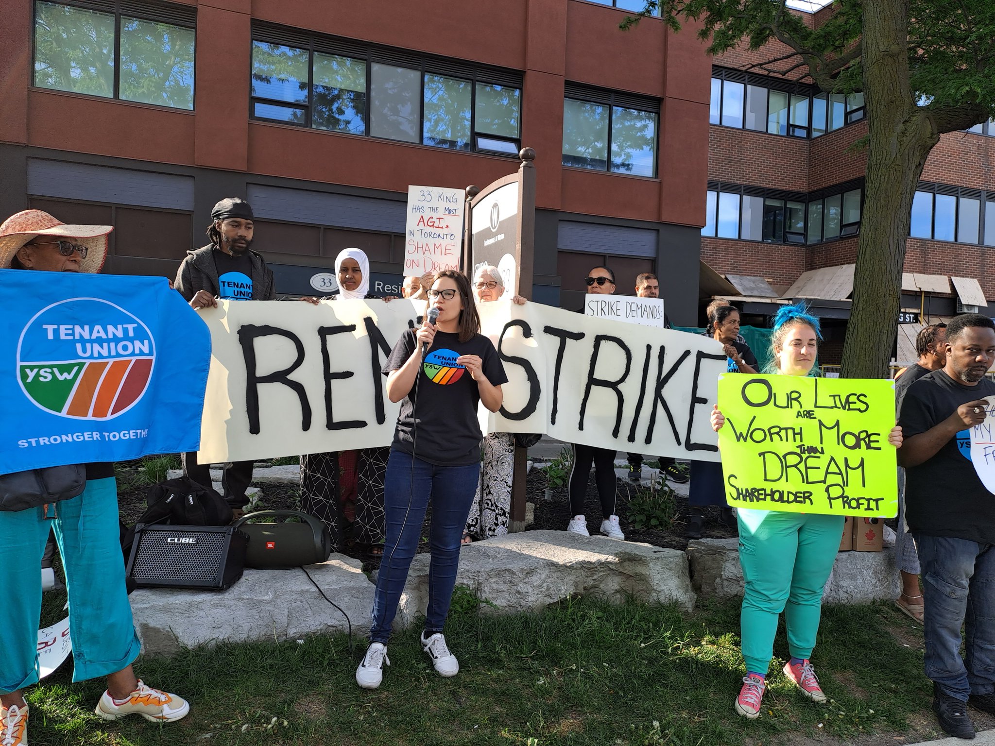 The long overdue rent strike involves tenants across Toronto in multiple buildings — 70 Thorncliffe Park, 33 King Street, 77 Spencer Avenue, and 109 Indian Road. Together, they are fighting back against their corporate landlords’ “above-guideline rent increases” (AGIs).