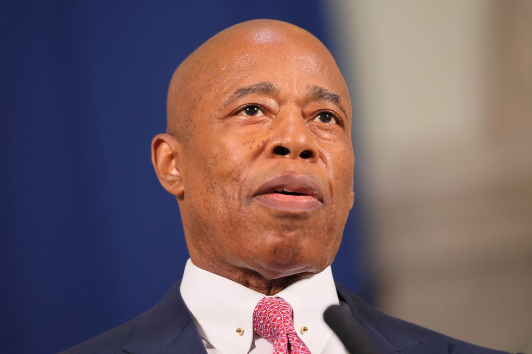 New York City mayor Eric Adams speaks during a press conference announcing lawsuits the city is filing against e-cigarette companies at city hall on July 10, 2023, in New York City. (Michael M. Santiago / Getty Images)