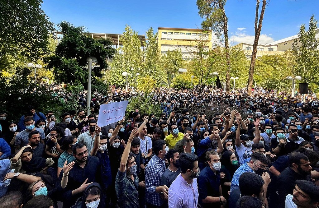 Students at Amirkabir University in Tehran, Iran protesting, September 20, 2022. (Darafsh / Wikimedia Commons)