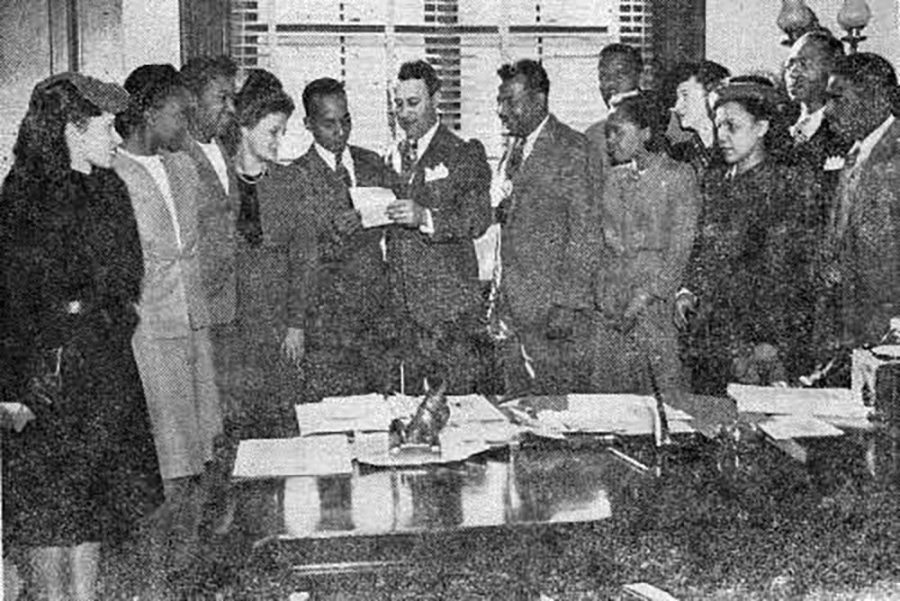 Members of the Southern Negro Youth Congress meet with Idaho Senator Glen Taylor in 1947. (Wikimedia Commons) The article mentions dozens of these organizations, some of them well studied, others more obscure. Among the organizations that cropped up repeatedly in the backgrounds of the SCLC cadre I studied were the National Negro Congress, the Southern Negro Youth Congress, the Southern Conference Educational Fund, the Progressive Party, and various left-led labor unions.