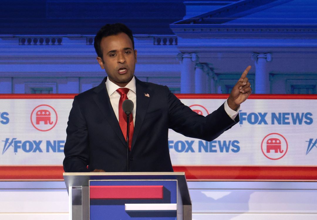 Republican presidential candidate Vivek Ramaswamy participates in the first debate of the GOP primary season hosted by FOX News at the Fiserv Forum on August 23, 2023, in Milwaukee, Wisconsin. (Win McNamee / Getty Images)