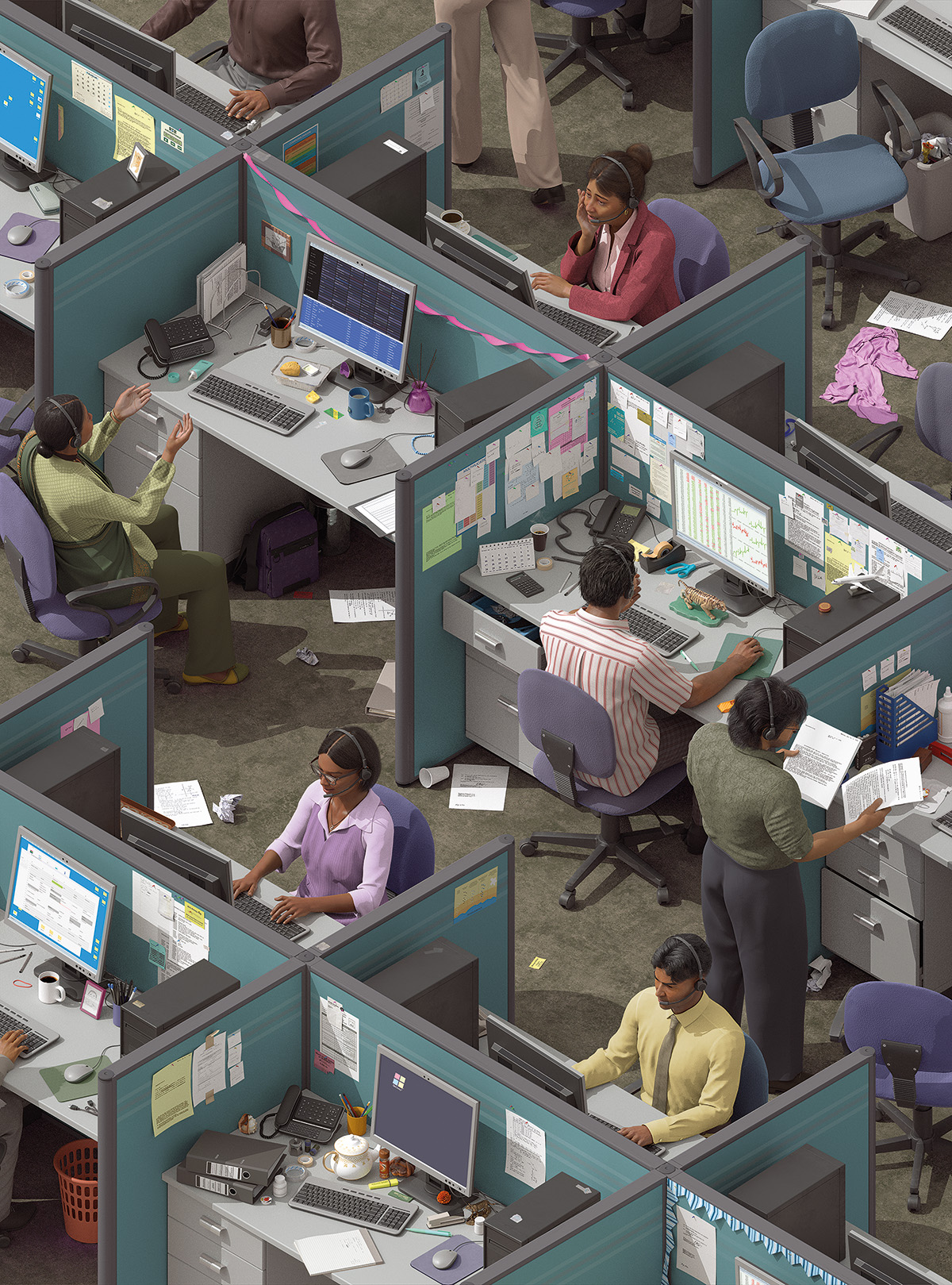 The call center, like the telephone, is native to the United States. It took its modern form during the 1960s and enjoyed a golden age that lasted roughly three decades. Starting in the mid-1990s, American companies began sending customer support jobs abroad, a back-office corollary to the offshoring of factory jobs to Mexico and China. Call center offshoring accelerated with the post-9/11 economic downturn, as most major banks, airlines, and phone companies moved customer support desks to India, home to a labor surplus bursting with college graduates who had been studying English since the third grade. In rapidly growing hubs near Delhi, Kolkata, and Mumbai, young Indians earned a fraction of the starting salary commanded in the States. Tech companies, meanwhile, also turned their attention to the subcontinent, where they could now hire programming and technical support staff fluent in Java for a mere $5,000 a year — $60,000 less than a similarly trained American.