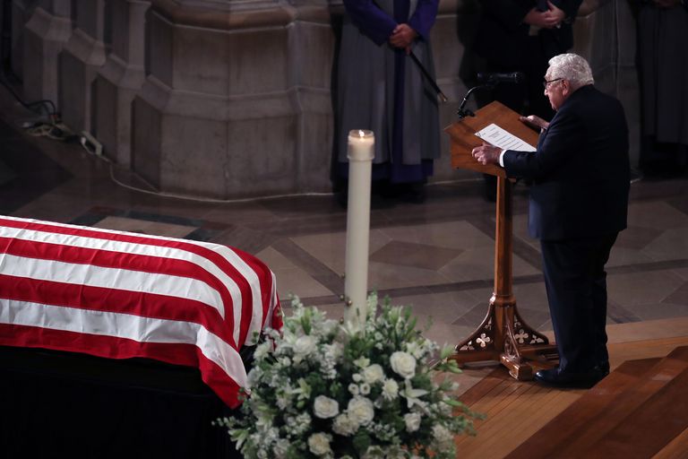 Henry Kissinger delivers a eulogy for John McCain, 2018.