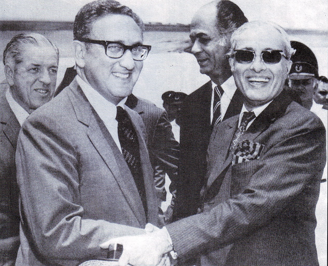 Henry Kissinger is received by Agha Hilaly, Pakistan’s ambassador to the United States, en route to China during a secret 1971 trip. (Ghulam Nabi Kazi / Flickr)