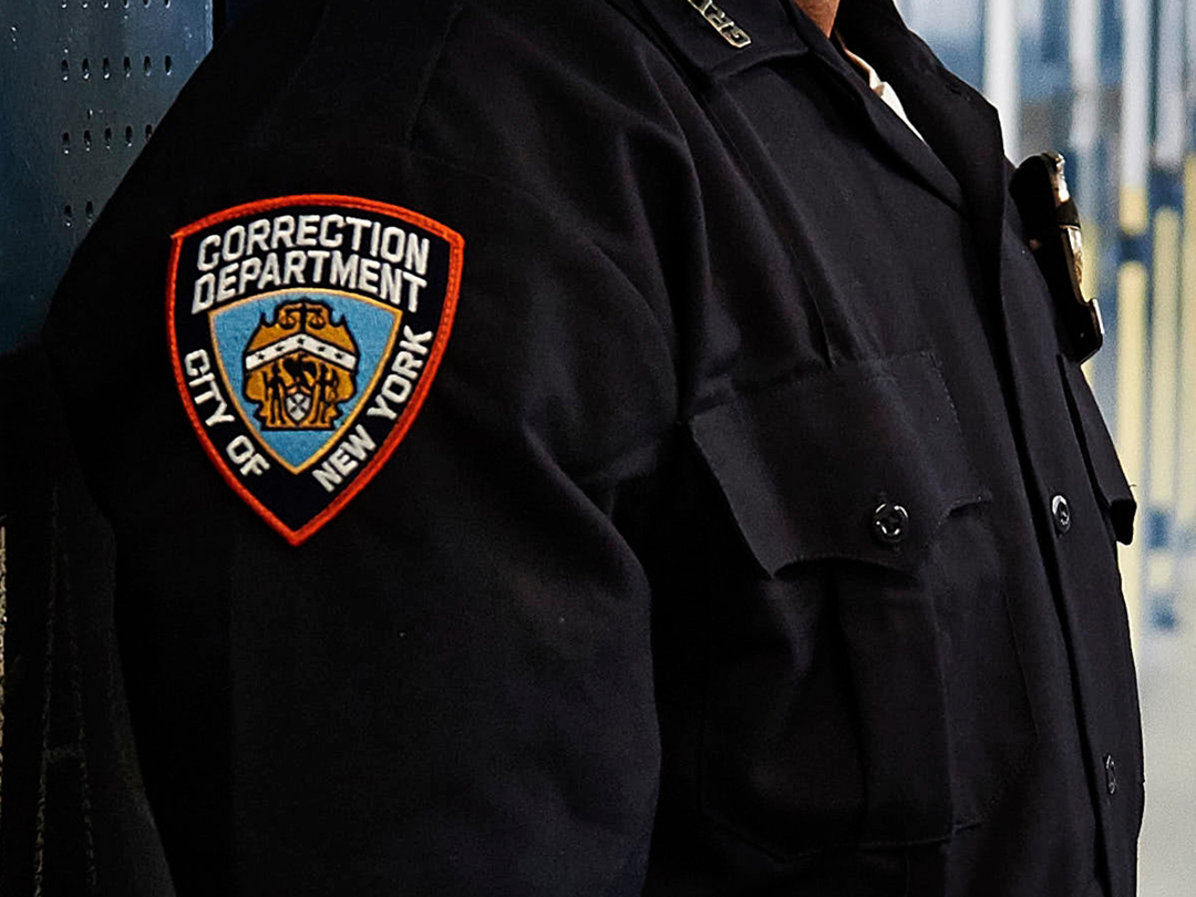 A New York City Department of Correction officer at Rikers Island. (James Keivom / New York Daily News / Tribune News Service via Getty Images)