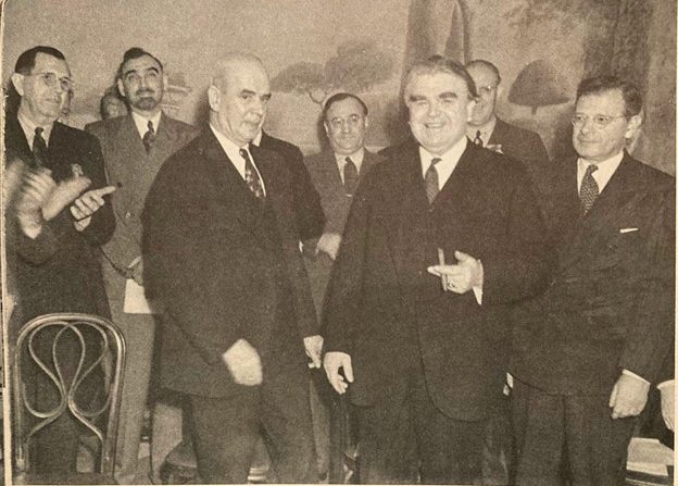 Front row: Philip Murray, John L. Lewis, and Sidney Hillman. Back row: William Mitch of the Miners, Jacob Potofsky of the Clothing Workers, and Emil Rieve of the Textile Workers. (CIO 1935-1955: Industrial Democracy in Action, December 1955)