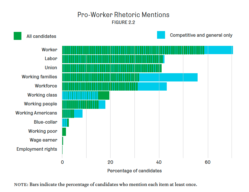 Gomez explicitly connects his own working-class history with that of many of his constituents, allowing him to convey that he really does know what it’s like to be in their shoes and will act accordingly in Congress. And there is good reason to believe he would: we also find that working-class candidates are systematically more likely to use rhetoric that reflects a commitment to working people than other candidates on the campaign trail — a fact that should reinforce their credibility among voters.