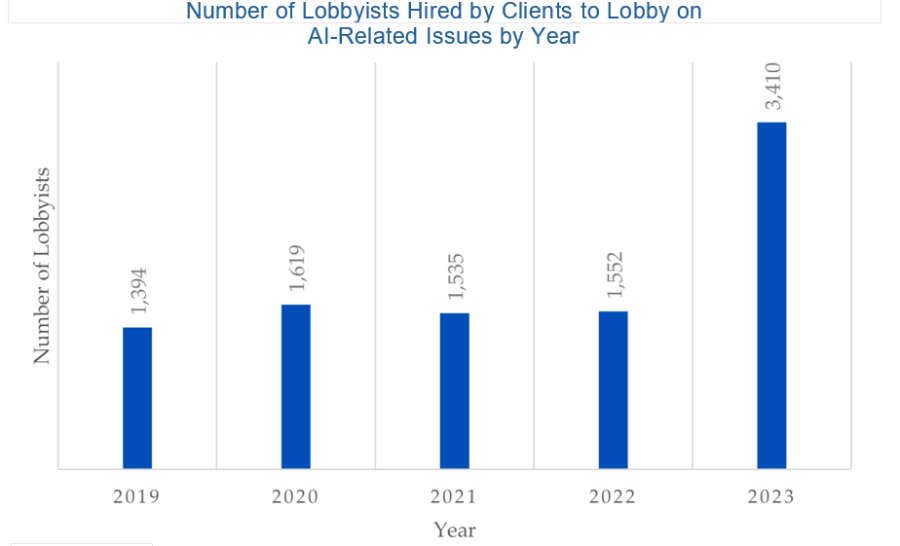 “As federal agencies move forward with developing guardrails for AI technologies, stakeholders will likely rely even more on their lobbyists to shape how AI policy is formed,” Public Citizen’s authors wrote.