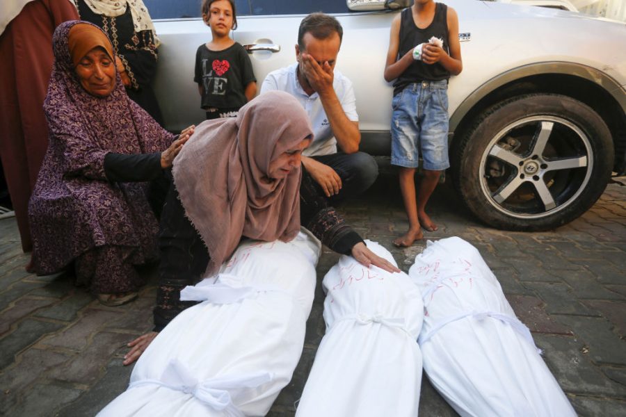 Palestinians mourn loved ones following an Israeli bombardment in Deir al-Balah in the central Gaza Strip on July 10, 2024. (Eyad Baba / AFP via Getty Images)