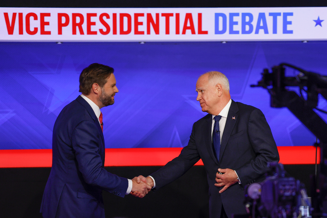 CBS News hosts a vice presidential debate between Sen. J. D. Vance and Gov. Tim Walz on Tuesday, October 1, 2024, at the CBS Broadcast Center in New York City. (Michele Crowe / CBS via Getty Images)