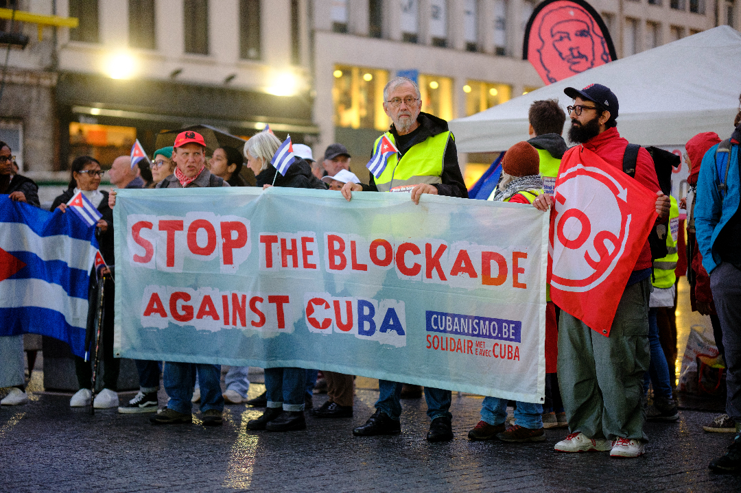 A demonstration for the lifting of the blockade against Cuba on October 29, 2024, in Brussels, Belgium. (Thierry Monasse / Getty Images)