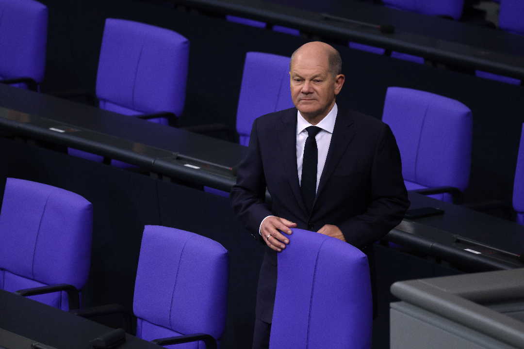 German chancellor Olaf Scholz attends a session of the Bundestag in which new finance minister Jörg Kukies was sworn in the day after Scholz fired previous finance minister Christian Lindner, on November 7, 2024, in Berlin, Germany. (Sean Gallup / Getty Images)